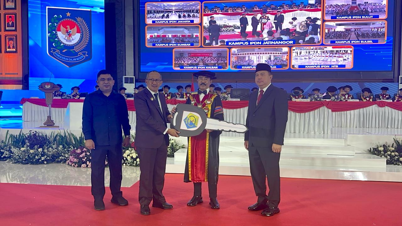 Penyerahan ini dilakukan pada acara Dies Natalis IPDN ke-68 yang diselenggarakan di Kampus IPDN Jatinangor – Sumedang, Jawa Barat, pada hari Senin, 18 Maret 2024.