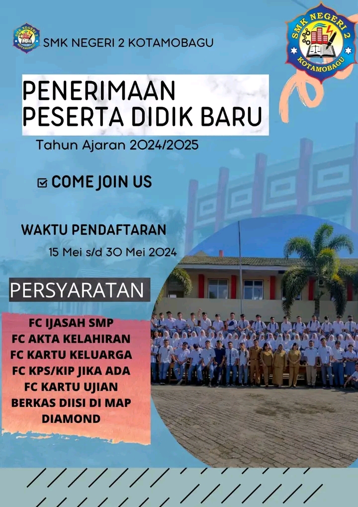 Bagi adik- adik siswa SMP kelas 9 yang mau bergabung melanjutkan studi di SMK negeri 2 Kotamobagu dapat memilih salah satu dari 9 kompetensi keahlian di bawah ini :