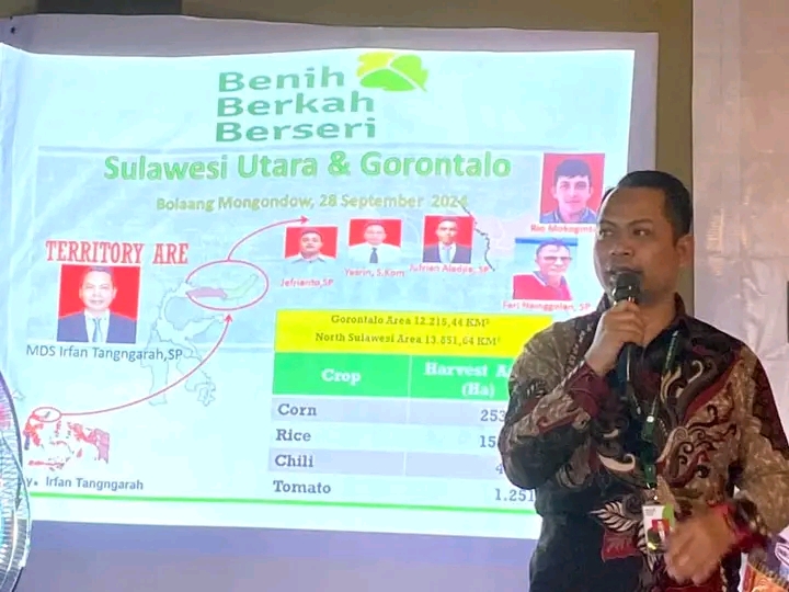 Dalam presentasinya, MDS Irfan Tanggara, selaku Territory Area Manager, menyampaikan bahwa PT Benih Berkah Berseri berkomitmen untuk menjadi solusi pertanian yang memberikan kebahagiaan di setiap musim tanam. “Kami menghadirkan produk pertanian tepercaya yang dapat dijangkau oleh seluruh lapisan masyarakat melalui inovasi dan teknologi,” ungkap Irfan. 28/09/2024