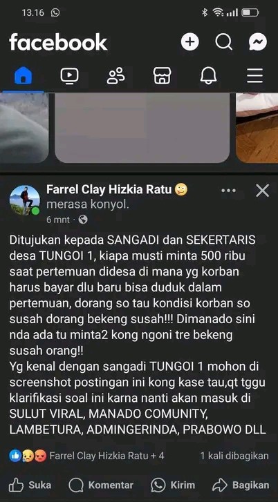 Sutrisno Ungko menyatakan bahwa tuduhan tersebut tidak berdasar dan telah merugikan nama baik serta integritasnya sebagai pemimpin desa.”Angka 500 ribu mungkin besar untuk pribadi semiskin saya, tapi itu sangat kecil dibandingkan harga diri saya,” ucapnya dengan nada serius.