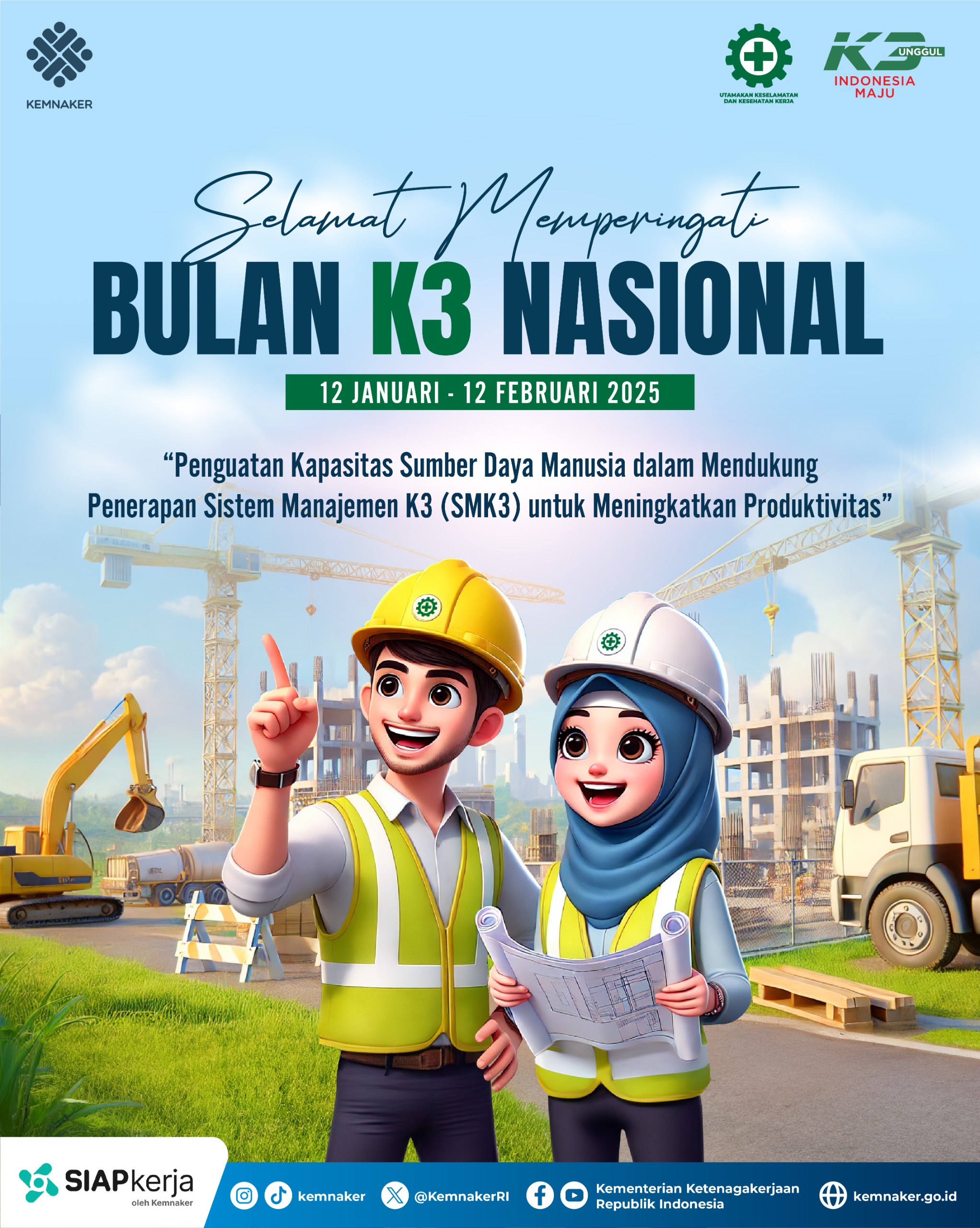 Mari jadikan K3 sebagai bagian dari identitas kerja kita, bukan hanya untuk mendukung keberlangsungan bisnis, tetapi juga demi melindungi nyawa dan kesehatan semua pekerja di Indonesia. Selamat menyambut Bulan K3 Nasional! ***