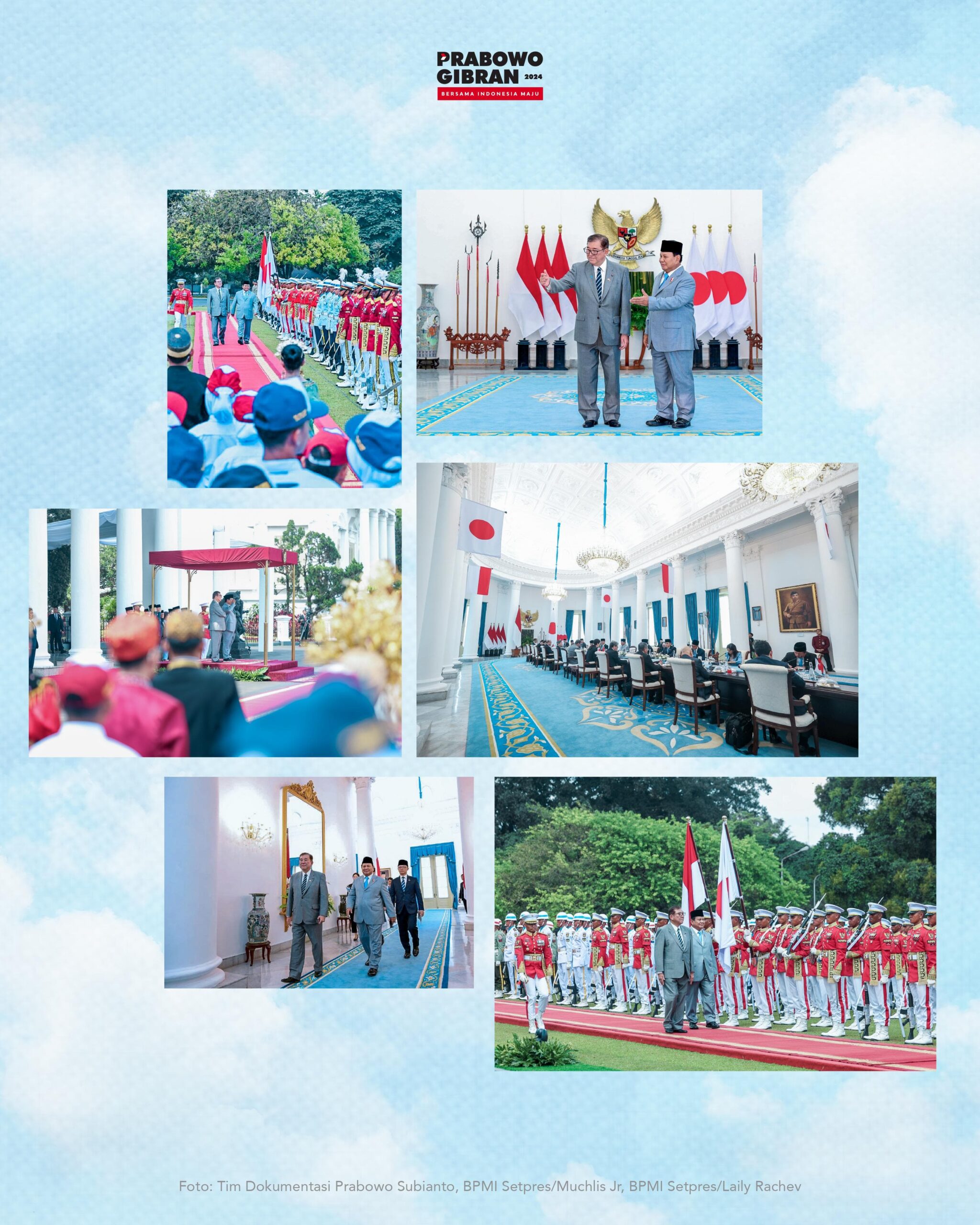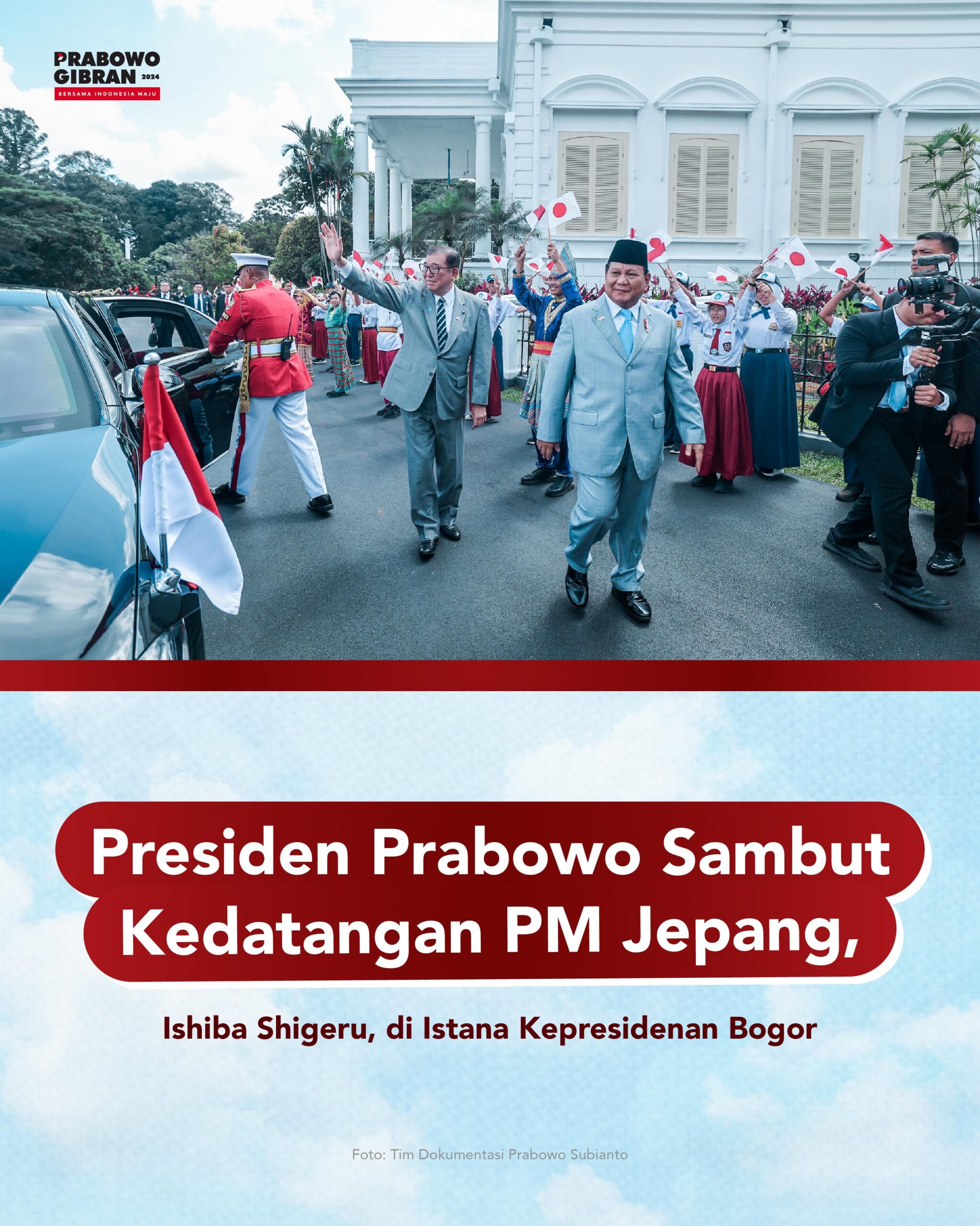 Suarabogani.com_ Presiden Republik Indonesia, Prabowo Subianto, menerima kunjungan resmi Perdana Menteri Jepang, Ishiba Shigeru, di Istana Kepresidenan Bogor. Kunjungan ini dimulai dengan upacara kenegaraan yang berlangsung khidmat, termasuk penyambutan pasukan kehormatan dan pengibaran bendera kedua negara. Suasana penuh persahabatan dan penghormatan terlihat saat kedua pemimpin bertemu untuk mempererat hubungan strategis yang telah terjalin selama lebih dari enam dekade.