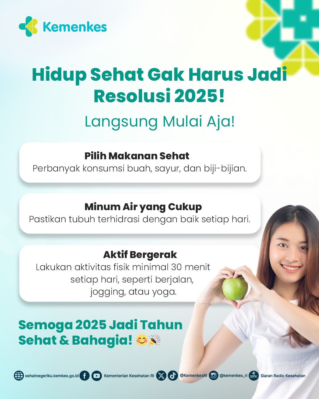 Mari jadikan 2025 sebagai tahun yang penuh energi positif dan kesehatan prima. Yuk, ajak keluarga, teman, dan lingkungan sekitar untuk bersama-sama menerapkan pola hidup sehat! ***