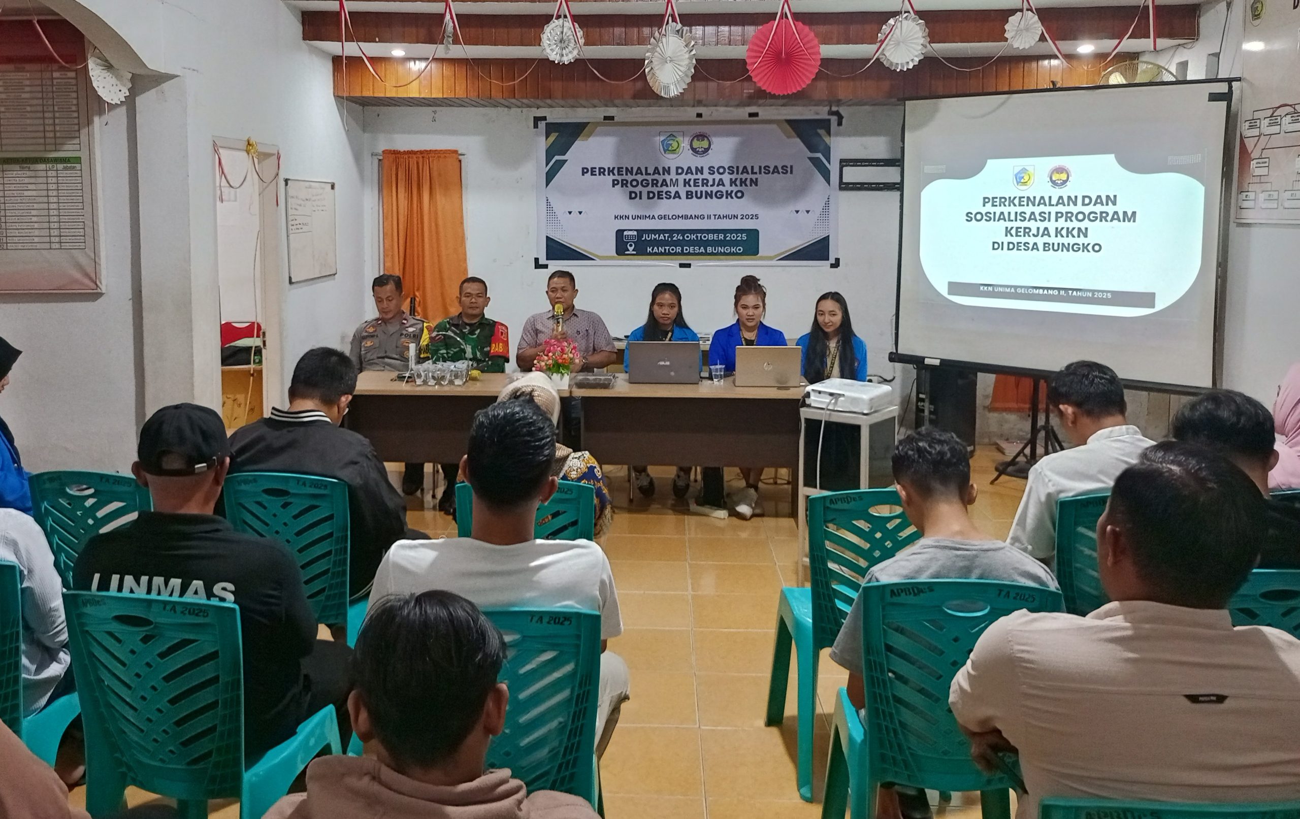 Sementara itu, Koordinator Posko KKN Desa Bungko, Reika Manoi, turut menyampaikan rasa terima kasih kepada pemerintah desa atas sambutan hangat yang diberikan. Ia juga berharap dukungan dari masyarakat agar seluruh program kerja yang direncanakan dapat berjalan dengan baik.