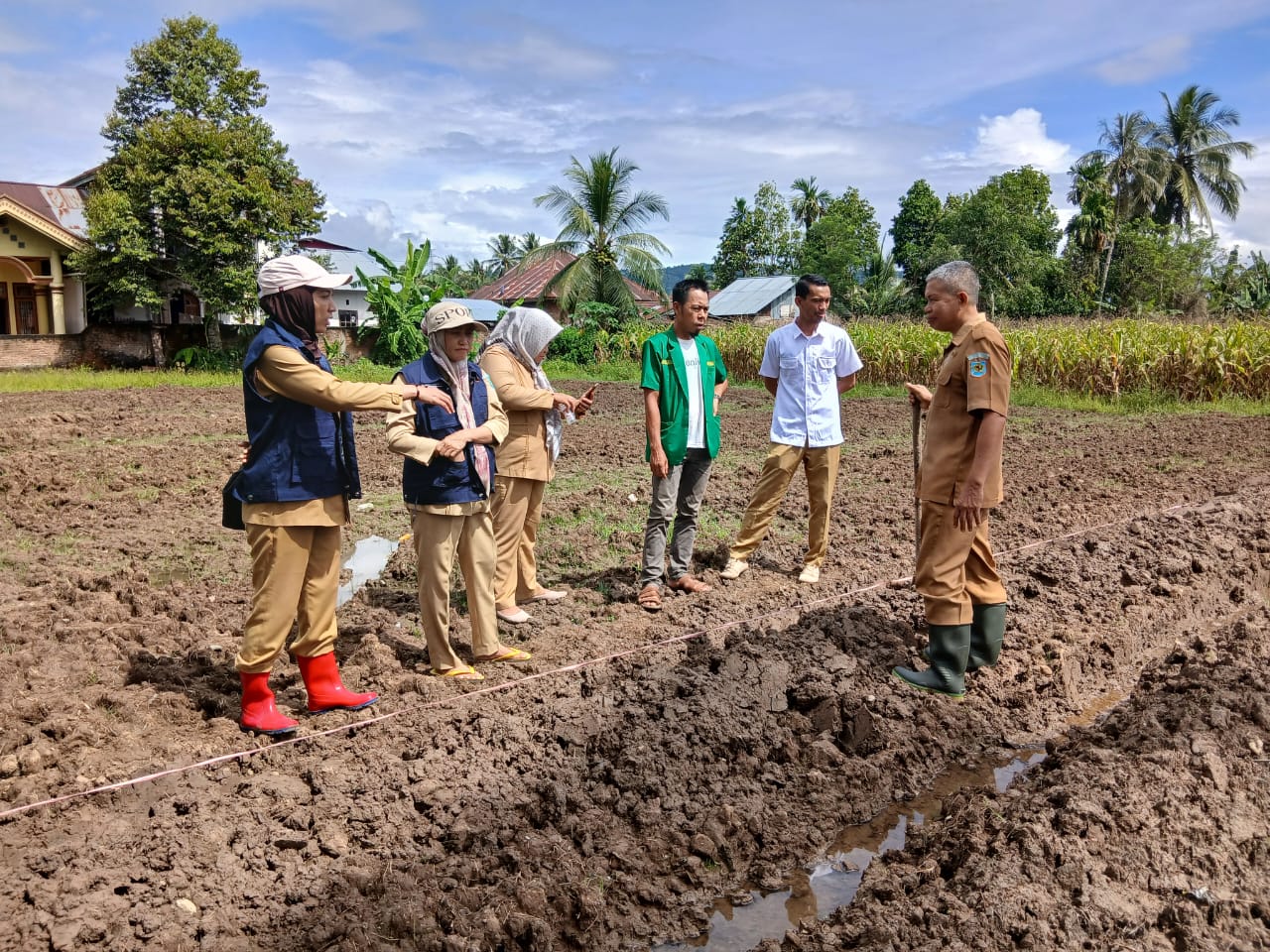 BOLMONG— Koordinator Balai Penyuluhan Pertanian (BPP) Lolayan, Sugeha Mokoginta, SST, bersama tim penyuluh pertanian, melaksanakan kegiatan pengukuran pH tanah di lokasi penanaman cabai yang digagas oleh PAC GP Ansor Lolayan. Kegiatan ini dilakukan guna memastikan kualitas tanah sebelum proses penanaman dimulai.