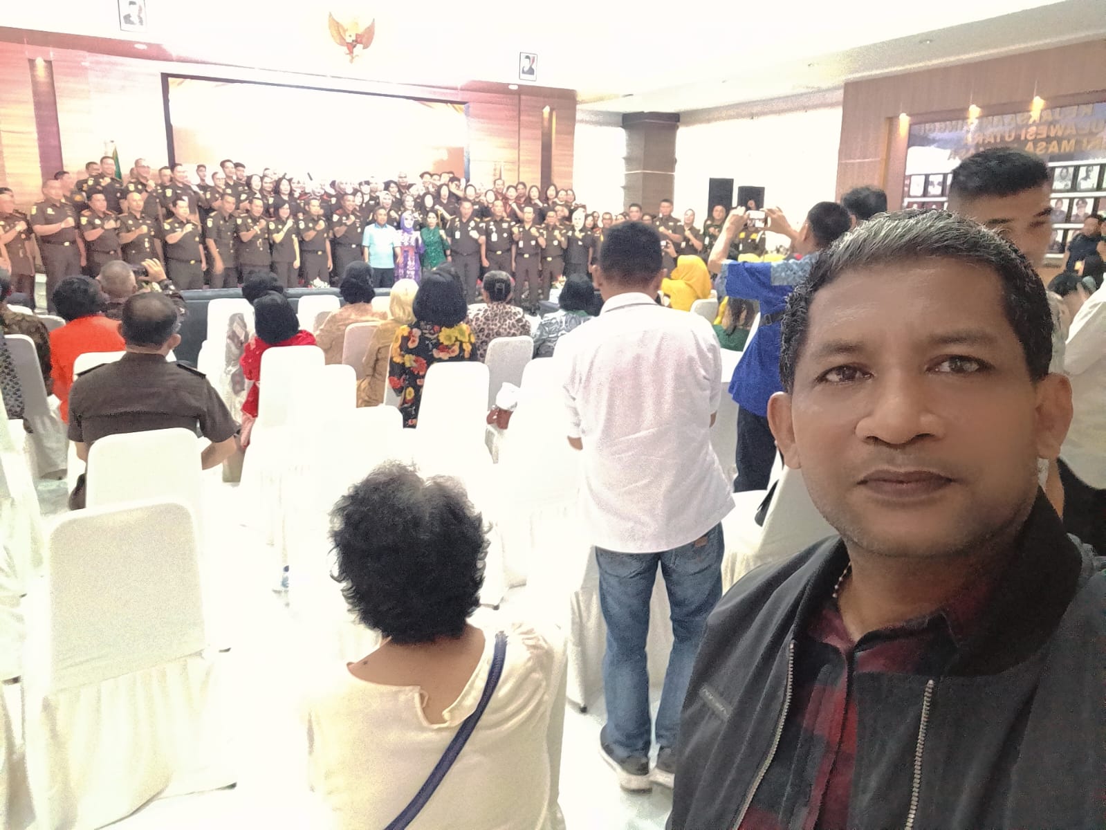 Manado — Penggiat anti korupsi, Robby Manery, menghadiri acara pisah sambut Kepala Kejaksaan Tinggi (Kejati) Sulawesi Utara, dari pejabat lama kepada pejabat baru, Jacob Hendrik Pattipeilohy, S.H., M.H.