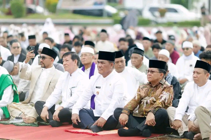 Dalam suasana penuh kebahagiaan, Gubernur menyampaikan rasa syukurnya karena dapat berkumpul bersama umat Muslim serta masyarakat lintas agama dalam merayakan hari kemenangan setelah menjalani ibadah di bulan suci Ramadhan. Ia menilai momentum Idul Fitri bukan hanya sebagai ajang silaturahmi, tetapi juga sebagai waktu refleksi diri.