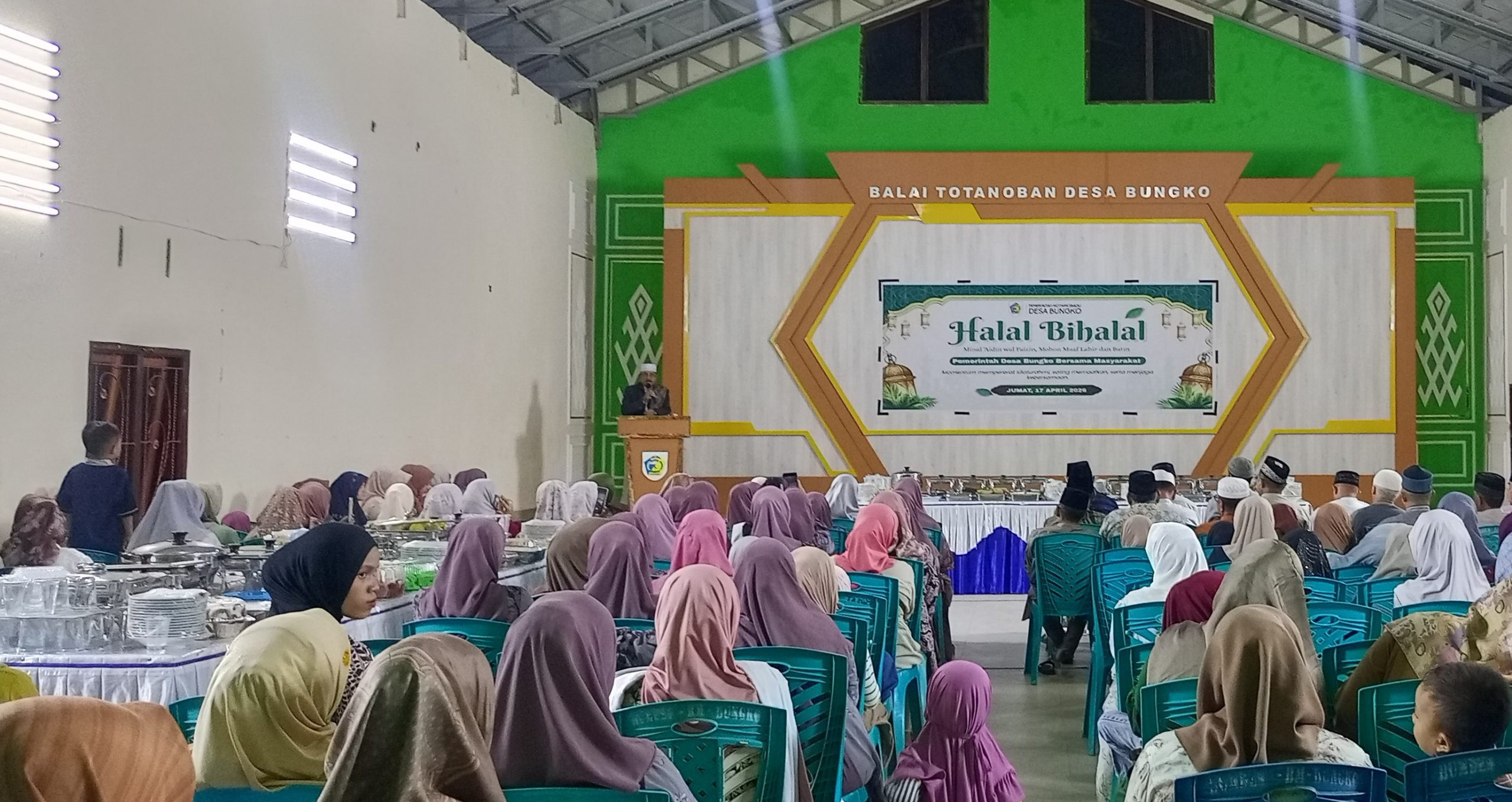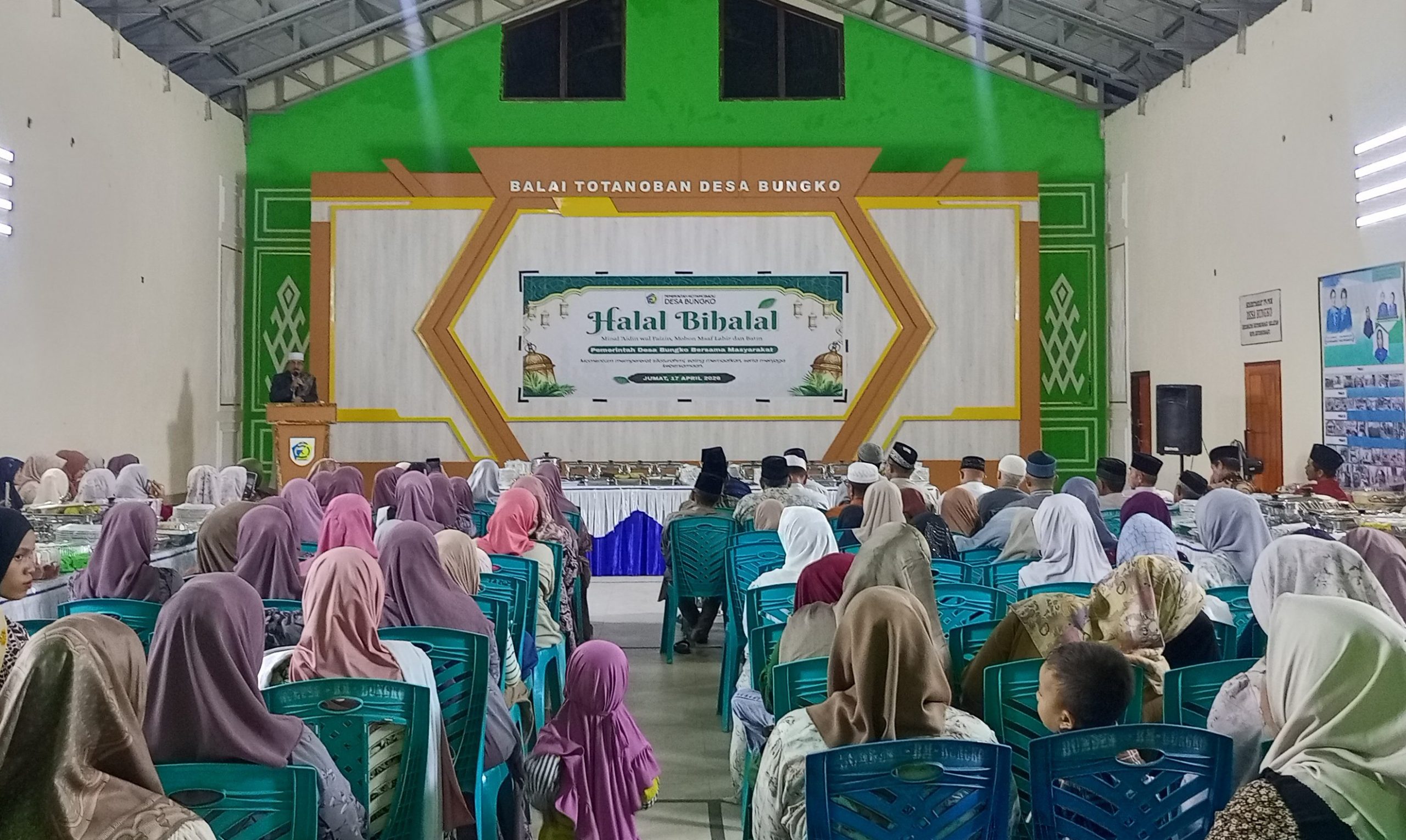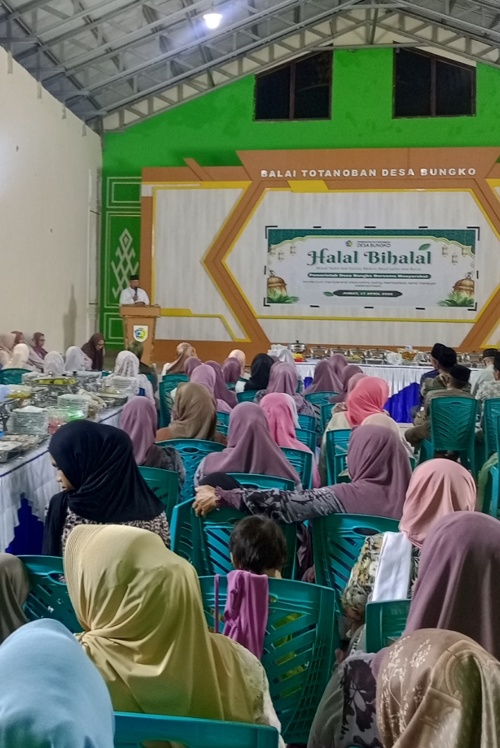Suarabogani.com_ Pemerintah Desa Bungko bersama masyarakat menggelar kegiatan halal bihalal sebagai bentuk mempererat tali silaturahmi pasca perayaan Idulfitri. Acara tersebut dilaksanakan di Gedung Balai Totanonan Desa Bungko Kecamatan Kotamobagu selatan dan berlangsung dengan penuh kehangatan serta kebersamaan.